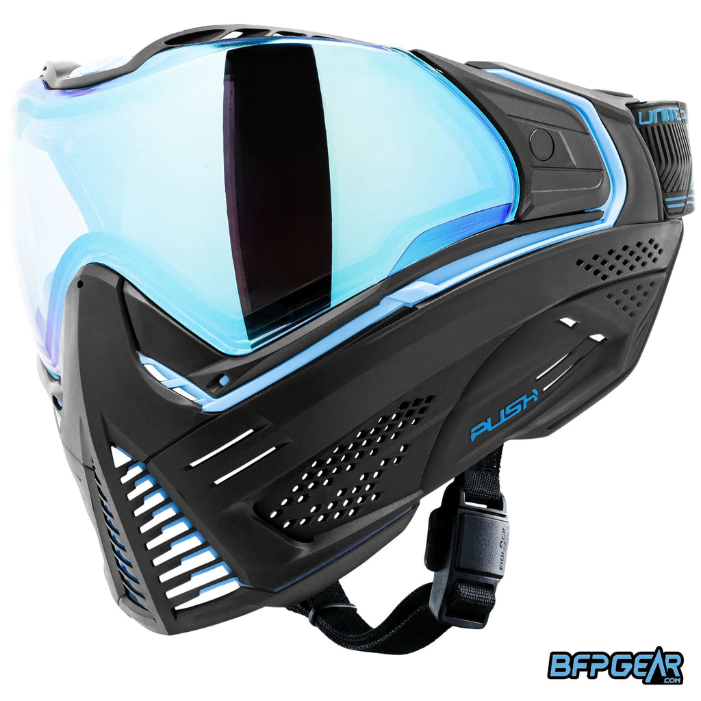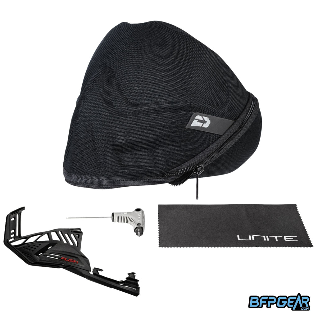The Push Unite Mk II paintball mask is a modular goggle system with fully interchangeable lenses, foam, straps, and accessories. Players upgrading from the original Unite will experience the same fit and feel, with the benefit of the complete current Unite system package.